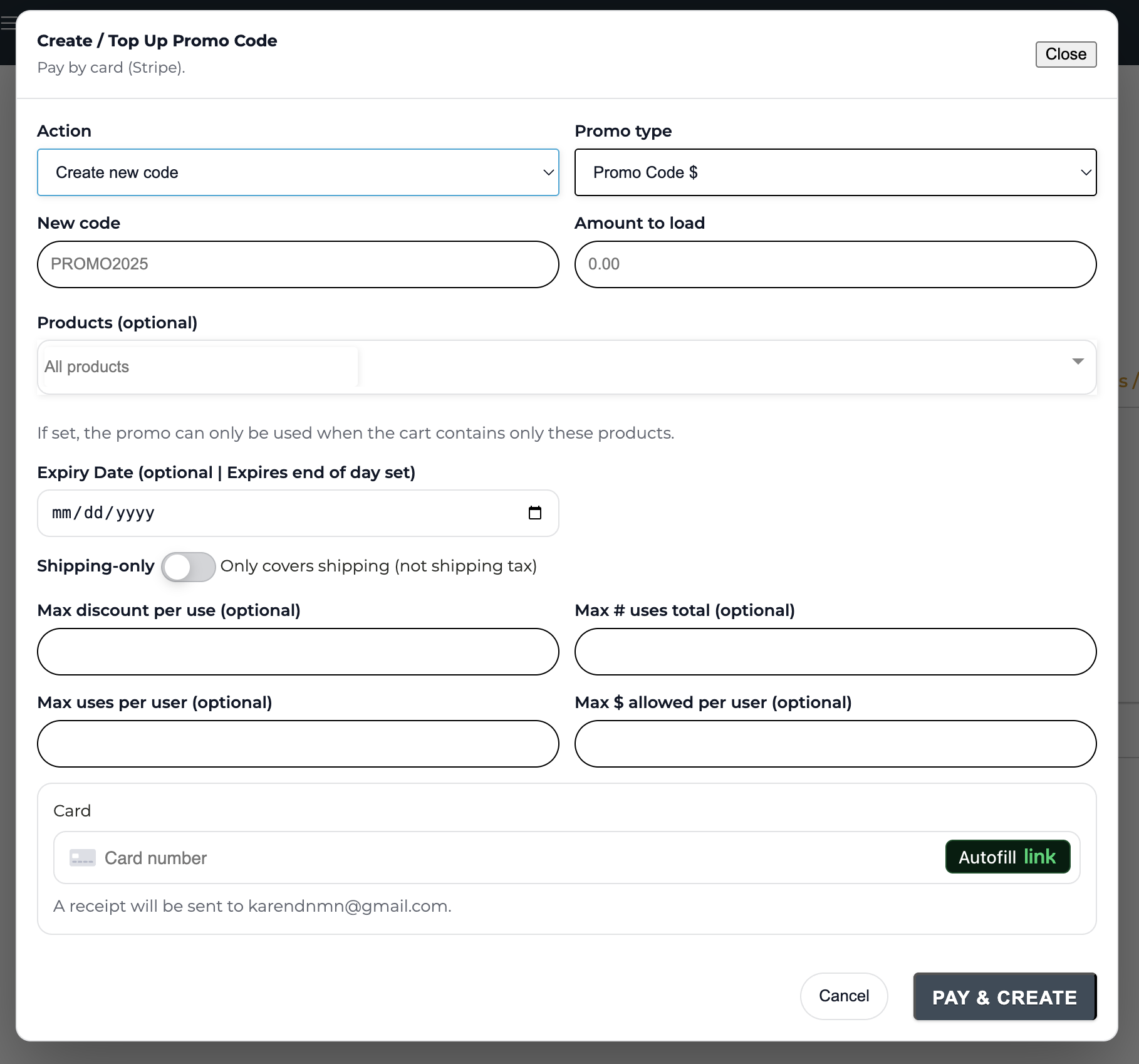 When creating or editing your promo code, you can: